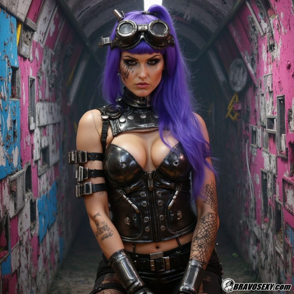 In the neon‑lit underbelly of a near‑future metropolis, Devil Doll Barbara stalks the streets as a living embodiment of cyber‑punk excess—a sleek, chrome‑capped assassin whose porcelain skin is etched with luminous circuitry and whose eyes flicker wi